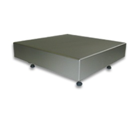 Hight and planarity of the platform are adjustable through four threated legs featuring a spheric hinged food with rubber coated surface for better adhesion on the surface.